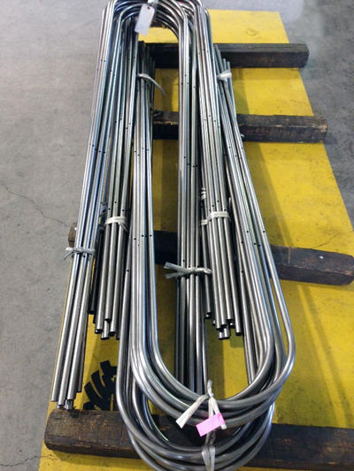 写真のようなU曲げだけでなく、L曲げ・コの字曲げ・への字曲げ・クランク曲げや3ヶ所曲げ・螺旋曲げも対応できますのでお問い合わせください。