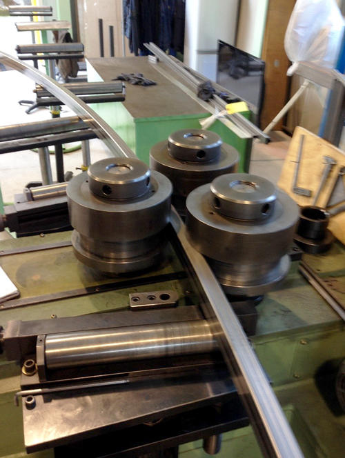 3本ロールで弓曲げ。定尺6mを外5830R、5710Rで曲げ加工。